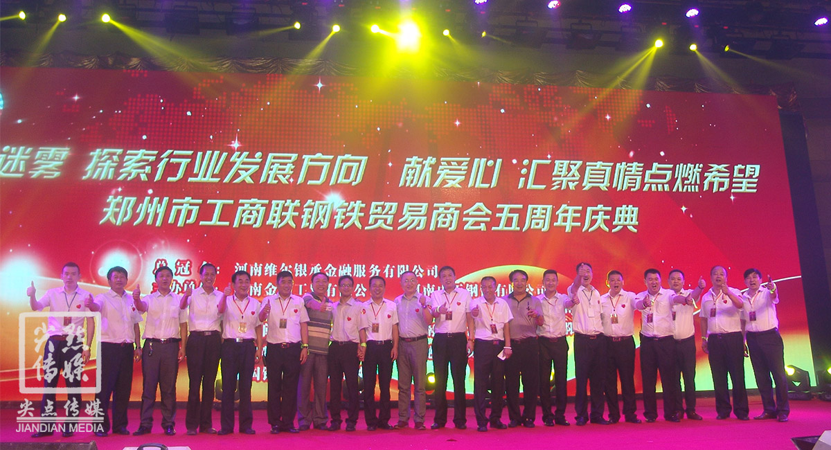 2014年7月29日,由河南尖点文化传播有限公司承办的“破迷雾,探索行业发展方向;献爱心,汇聚真情点燃希望”----郑州市钢铁贸易商会五周年庆典在郑州市会展中心隆重举行,近1000位来宾,朋友欢聚一堂,共同见证了郑州市钢铁贸易商会五周年的盛大庆典。